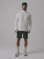 AORA emphasizes durable, breathable, and flexible fabrics in its designs evident in its use of moisture-wicking materials that enhance comfort, flexibility, and longevity.